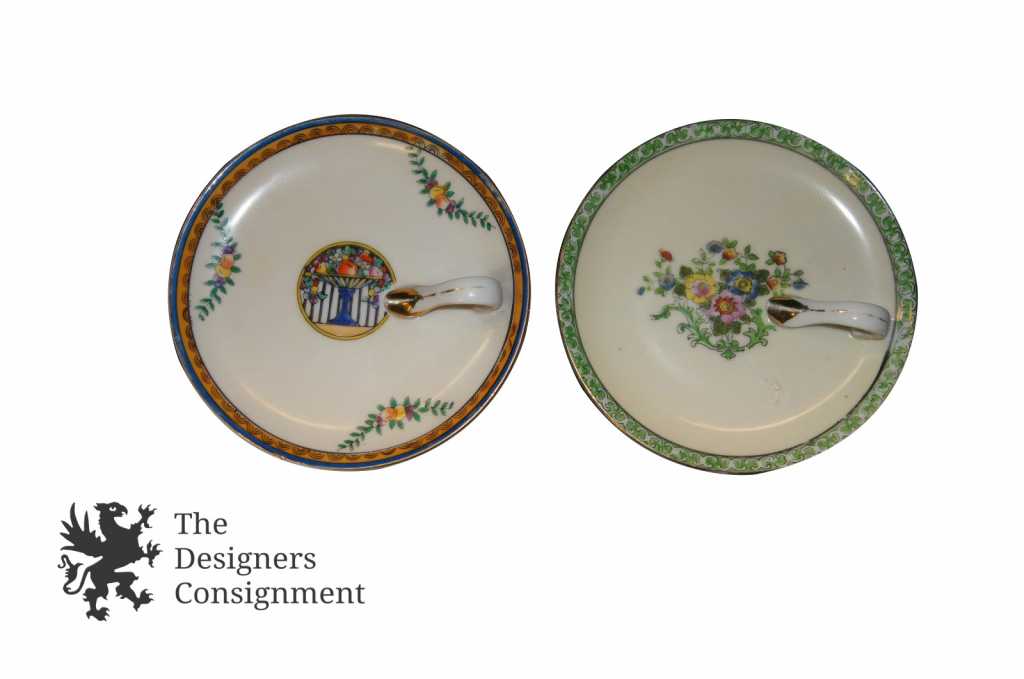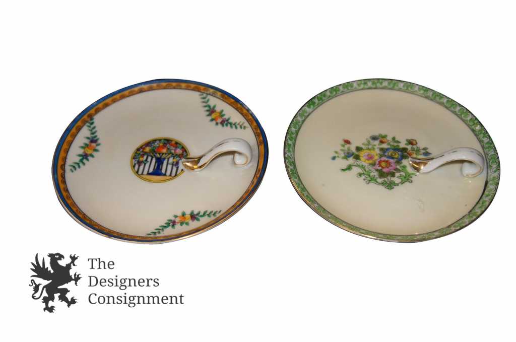 These are great pieces of handpainted Noritake China. They are compotes or potentially candleholders one has a bowl of fruit on it and the other has floral motifs to it both have a gold trim to them. These are beautiful pieces and they would make wonderful additions to your home or collection.
