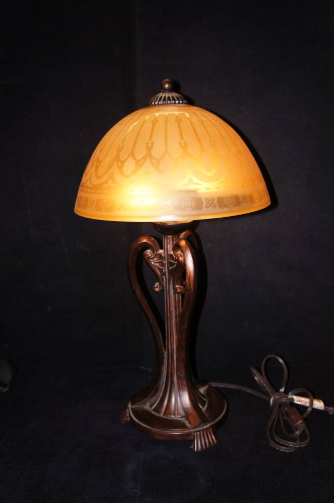 Unique Art Deco Style Bankers Desk Table Lamp Etched Dome Glass Shade Executive