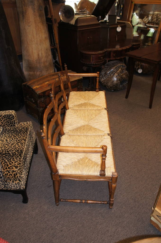 Vintage Wood Wicker Seat Outdoor Patio Furniture Seating Pool Garden Bench
