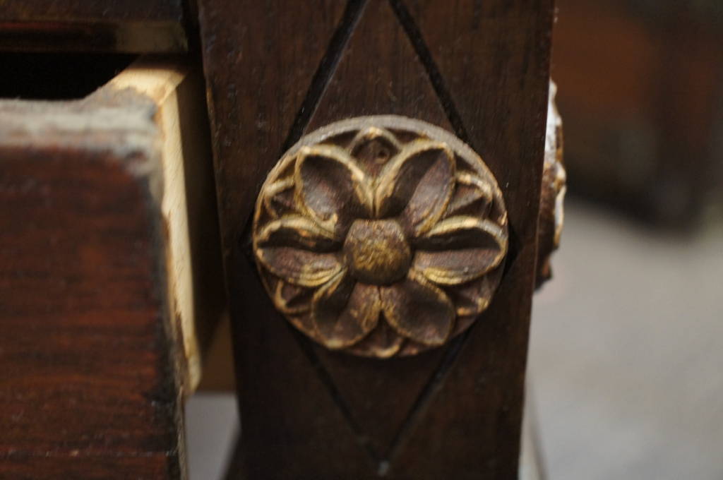 Small Vintage Mid-Century Leather Top End Side Accent Table w/ Drawer
