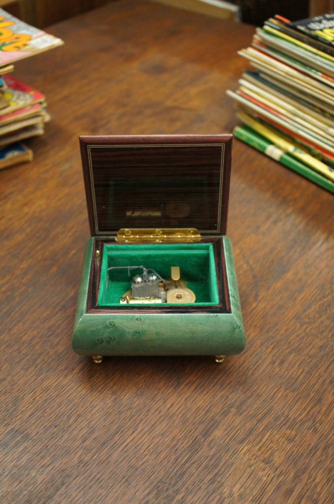 Rare Jobin Of Switzerland Swiss Green Marquetry Music Box Edelweiss By Rogers