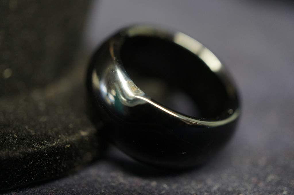 Vintage Hand Crafted Black Solid Jade Band Ring Size 9