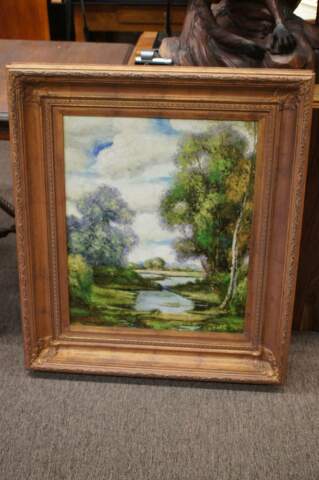 Beautiful Signed L. Stephano Oil Paiting Landscape W/ Frame Lake In the Woods
