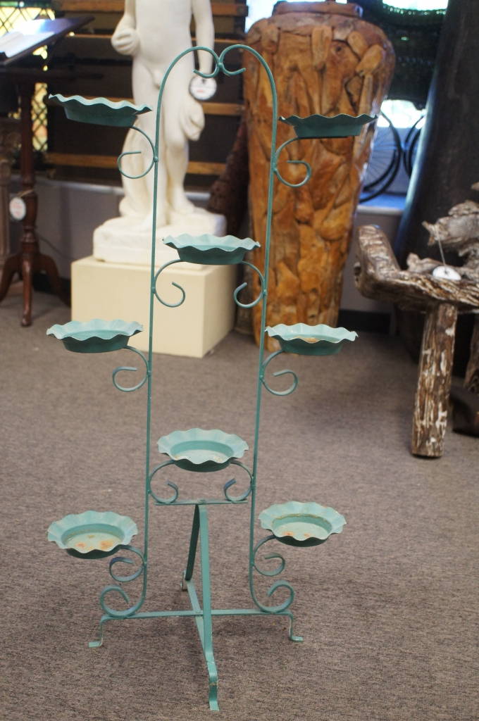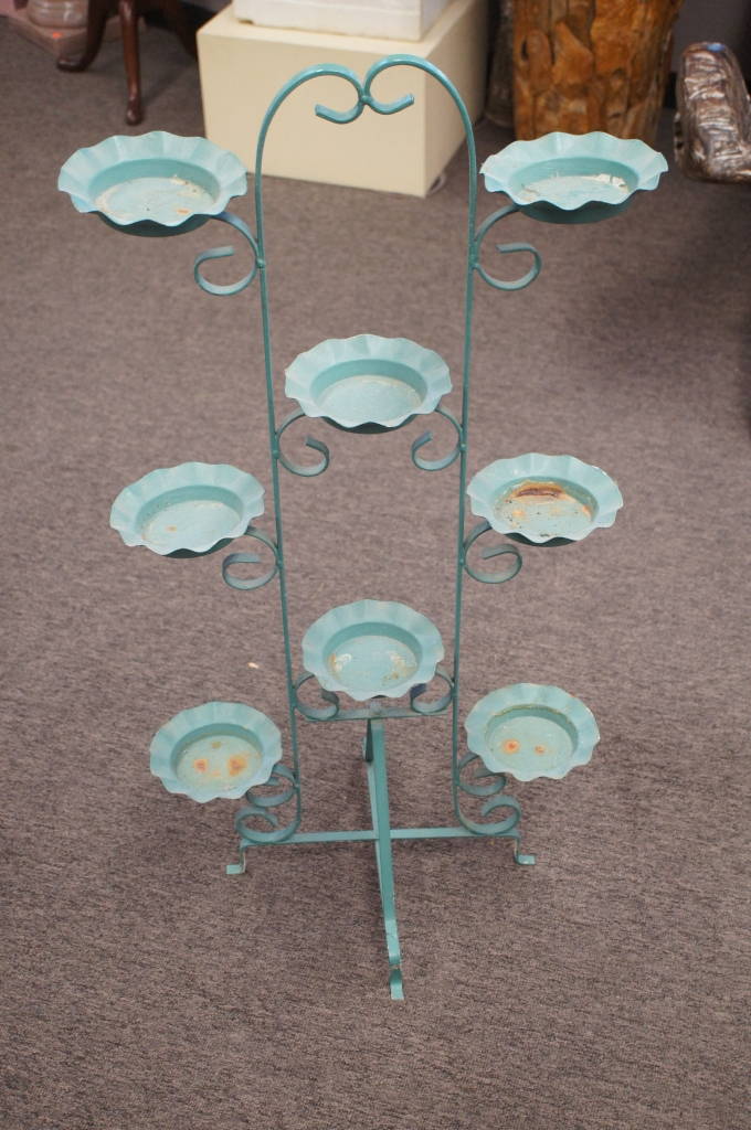 Vintage Wrought Iron Turquoise Garden Plant Stand 8 Rippled Flower Holders