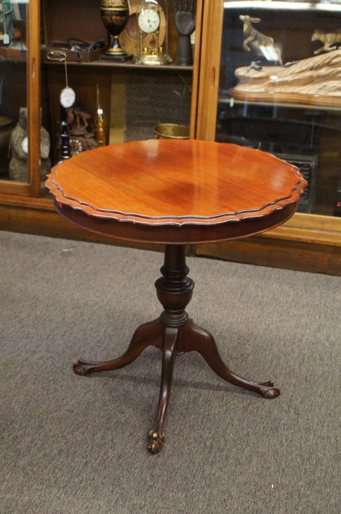 Vintage Medallion Scalloped Top Traditional Round Drum Side Table Claw & Ball