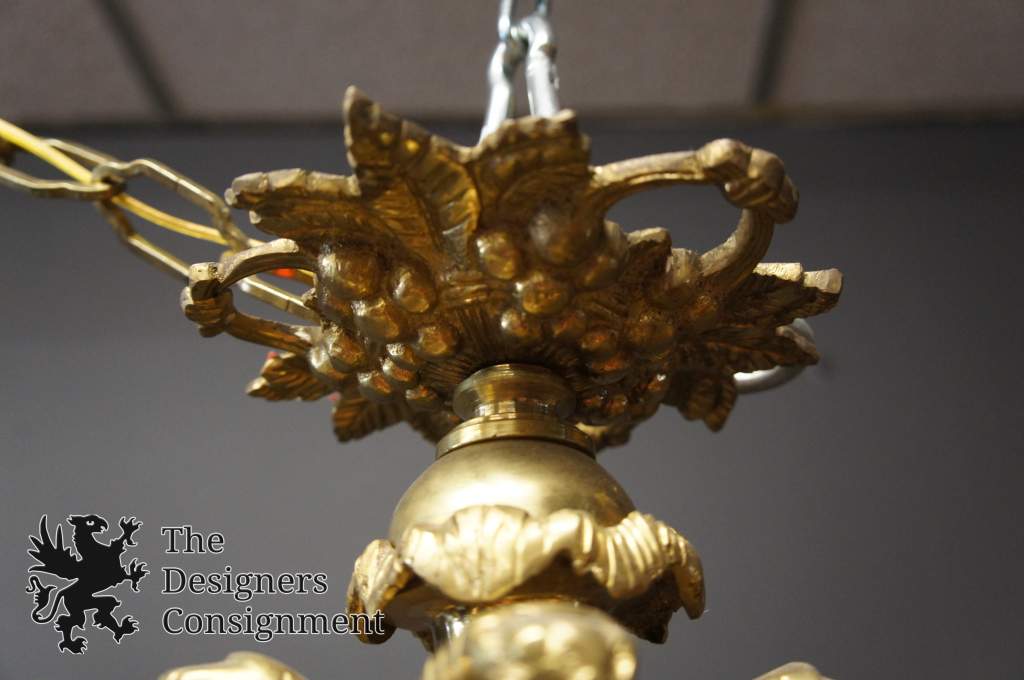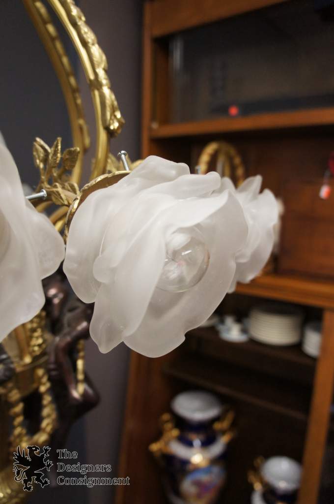 Beautiful Rare Antique Brass Women Frosted Glass Floral Shades Chandelier