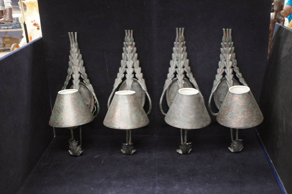 4 French Vintage Wrought Iron Rustic Turquoise Single Arm Wall Sconces Lights
