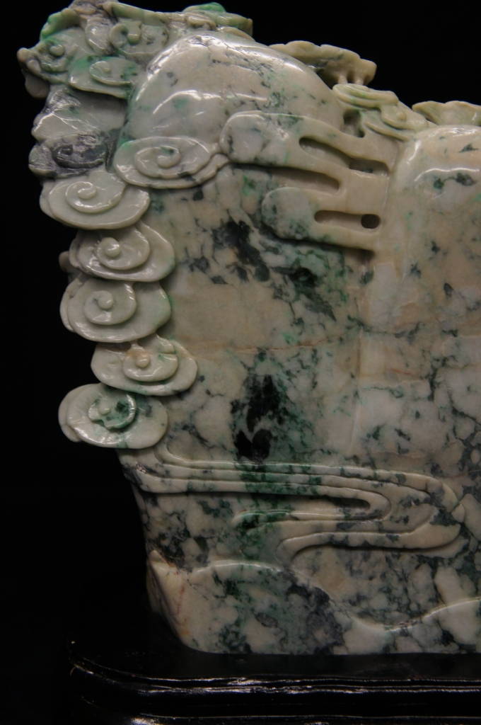 Large Hand Carved Natural Green Jade Jadeite Fu Lu Shou Mountains Bats 3 Deities
