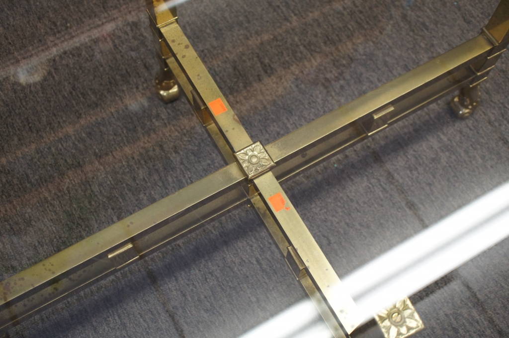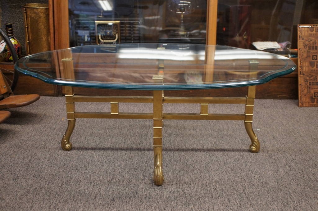 Vintage La Barge Brass Scalloped Glass Top Hollywood Regency Coffee Table