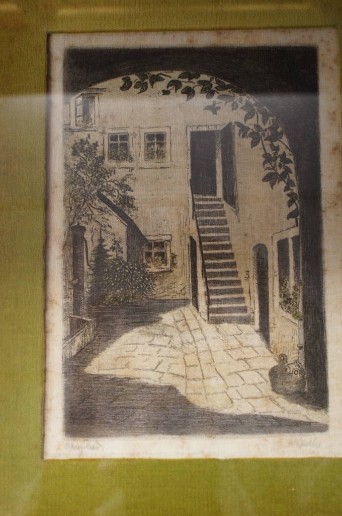 4 Vtg Original Art Etchings on Silk Artist H. Leisch German Town Scenes Austria