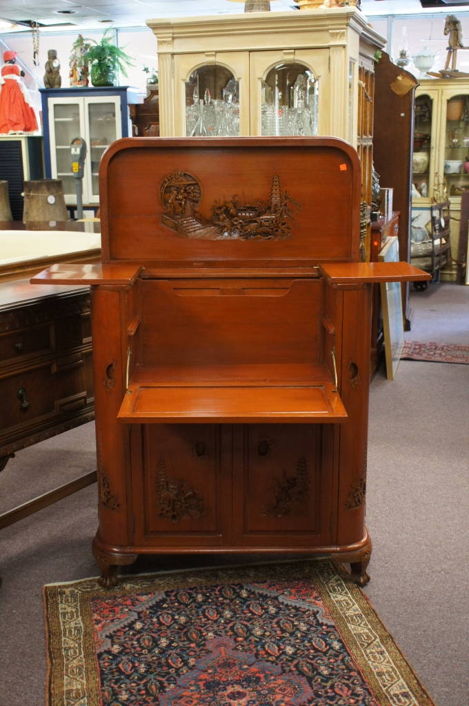 Amazing Rare Vintage Asian Oriental Theme Dry Drinks Bar Cocktail Cabinet