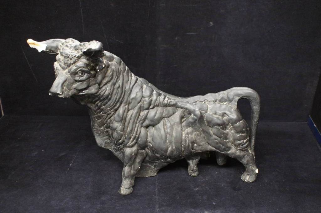 Large Rare Unique Vintage Black Ceramic Bull Figurine Statue 14.5" Tall
