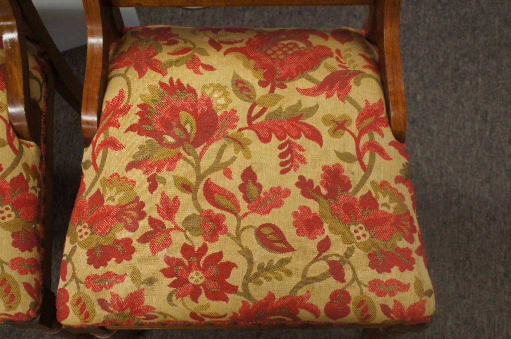 Features a red floral upholstery pattern. Victorian era, Eastlake style