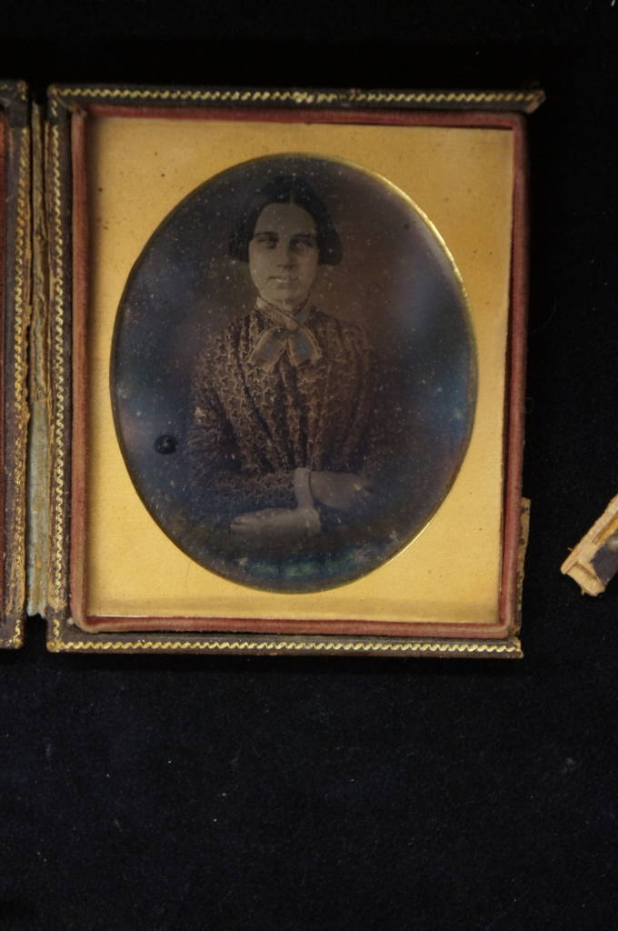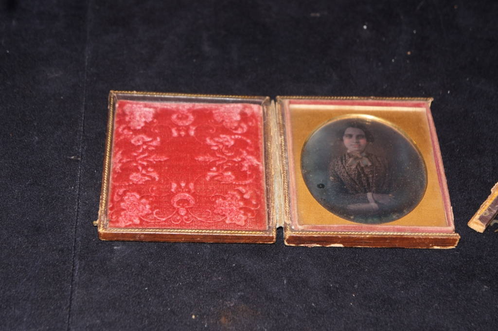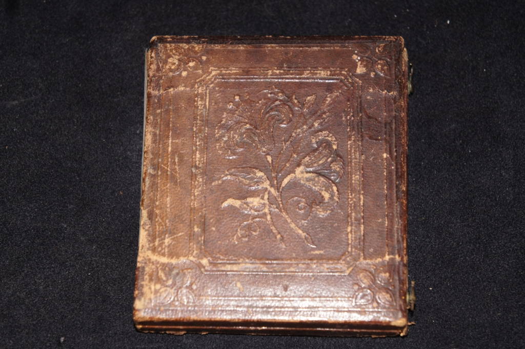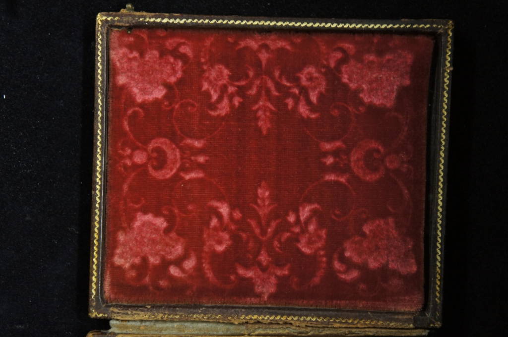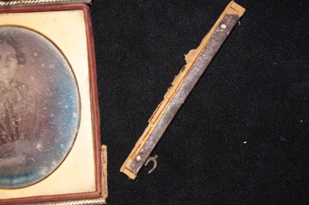 Antique Tintype Photograph Leather Case Flower Woman Velvet Interior Brass Latch