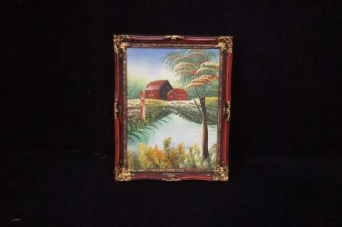 Lot Of 2 Asian Oriental Farm Pond Women Windmill Lighthouse Scene Oil Paintings