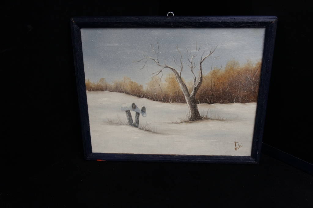Signed Oil Painting on Canvas Winter Country Landscape Scene Original Wood Frame