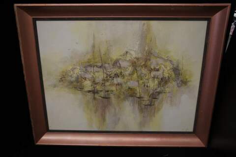 Mid Century Modernist Orig. Polymer Acrylic Painting "Harbor" Margaret M. Glinke
