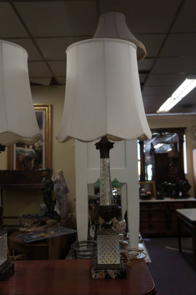 Vintage Pair Frederick Cooper Tyndale Brass and Crystal Table Lamps 37" Tall