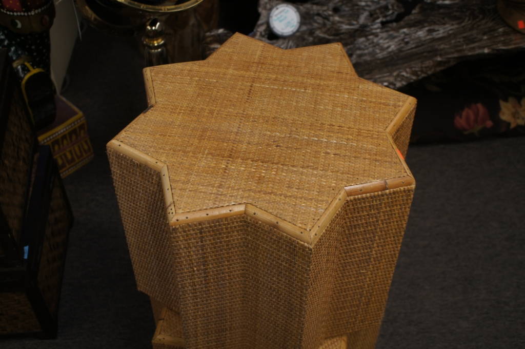 Pair Of 2 8 Point Star Wicker Rattan Accent Coffee Side End Tables Night Stand