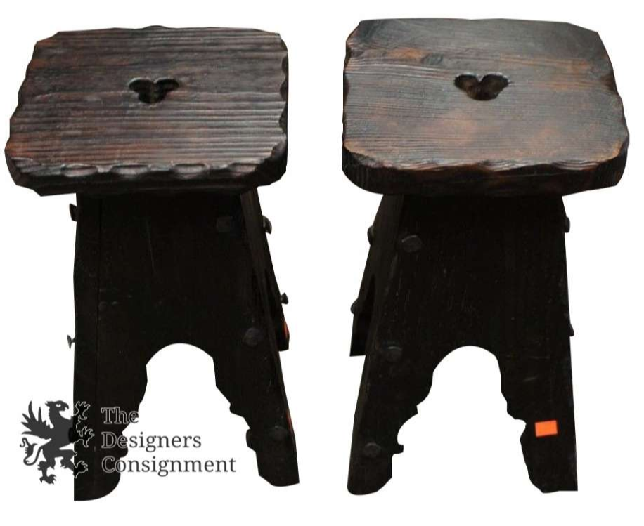 Rustic Pine Side Table & Stool Set Childrens Game Table or Plant Stands Ebony