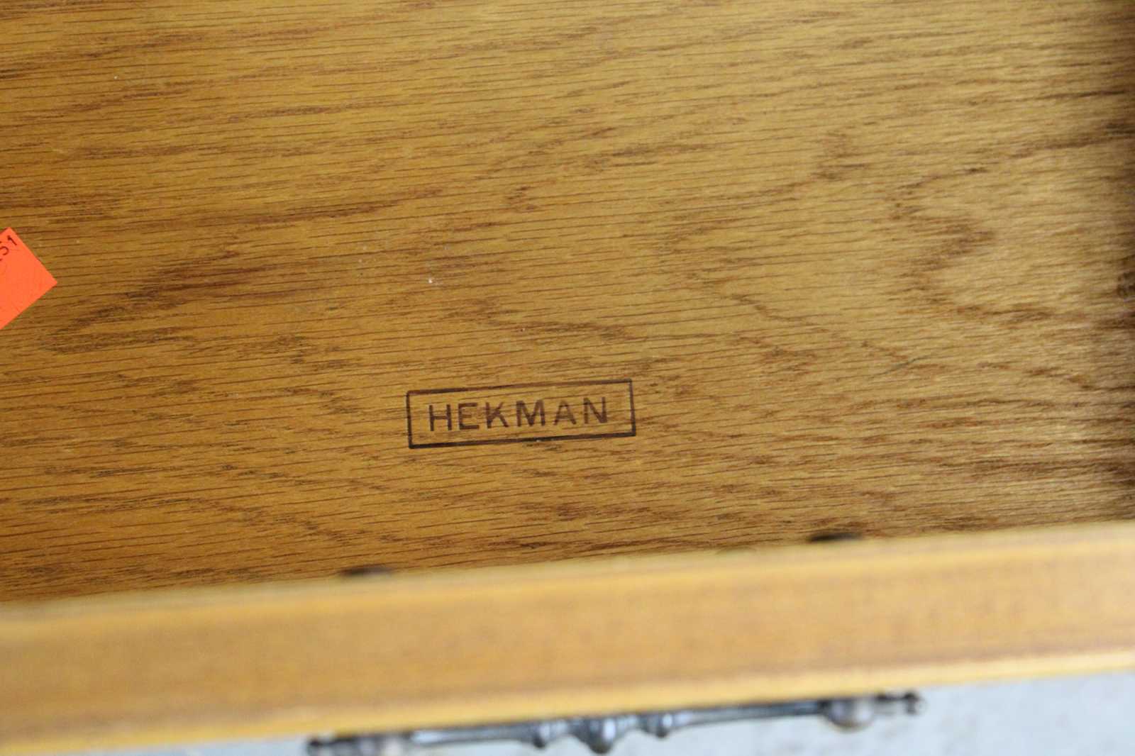 Late 20th century Country French side table by Hekman. Made from maple with paneled sides and a dovetailed drawer. Features a serpentine cut apron and cabriole legs.