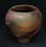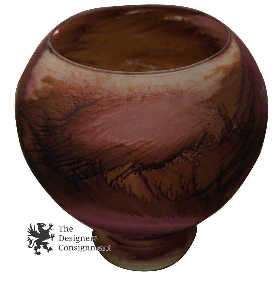 Here is a beautiful Spanish vase. Features splashes of purple in a fishbowl shape. The base is clear.