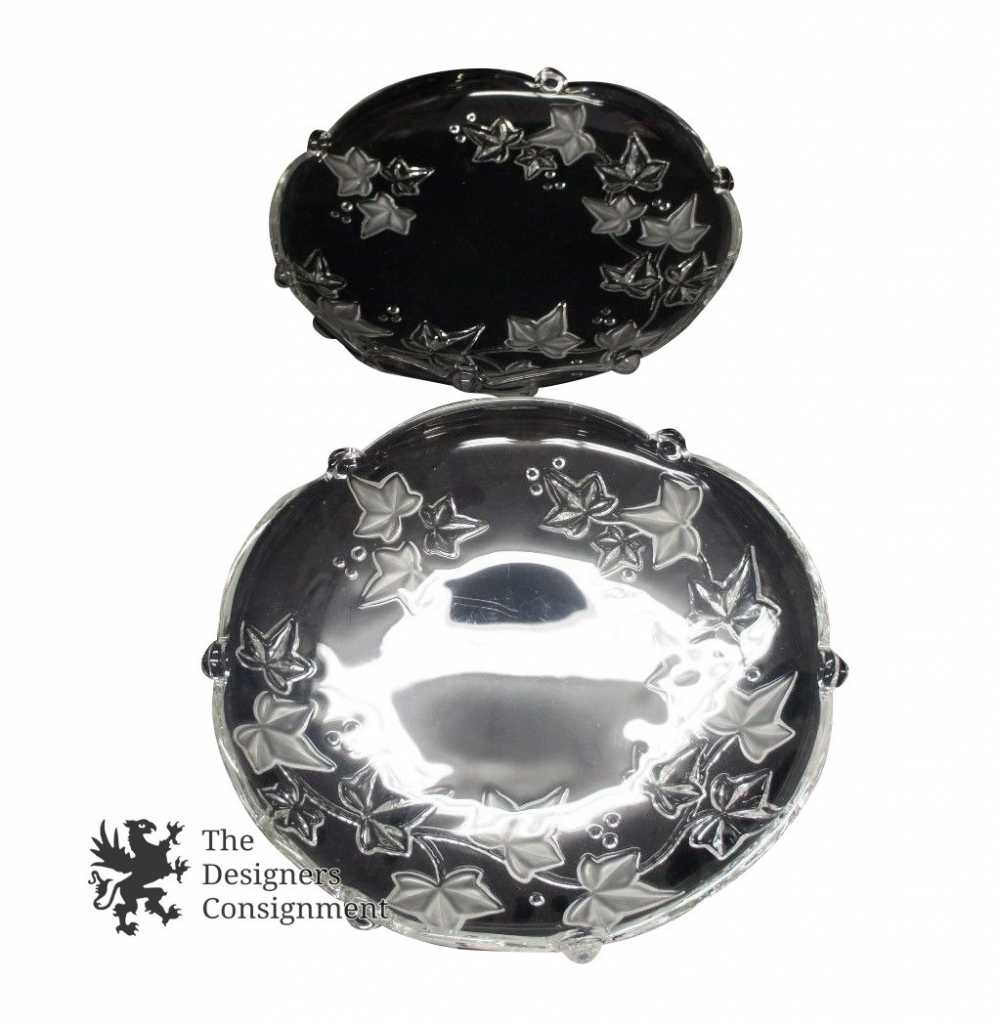 Clear glass with frosted leaf designs, this set comes with 2 matching vases as well