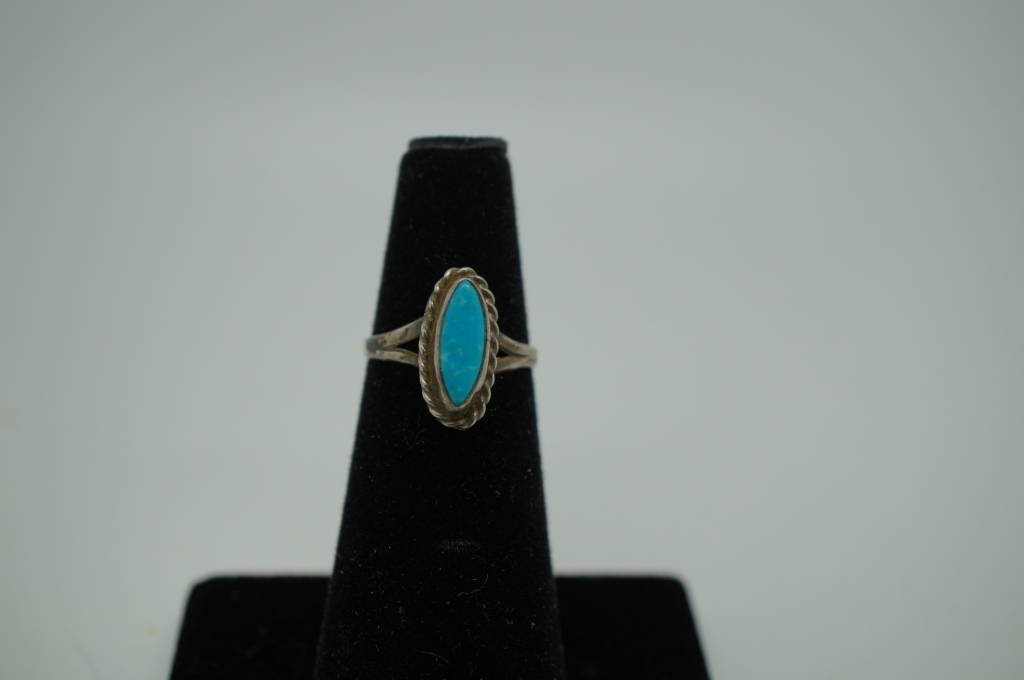 Vintage Ladies Navajo Style Hand Made Oval Turquoise Ring 1.8 Grams Size 4.5