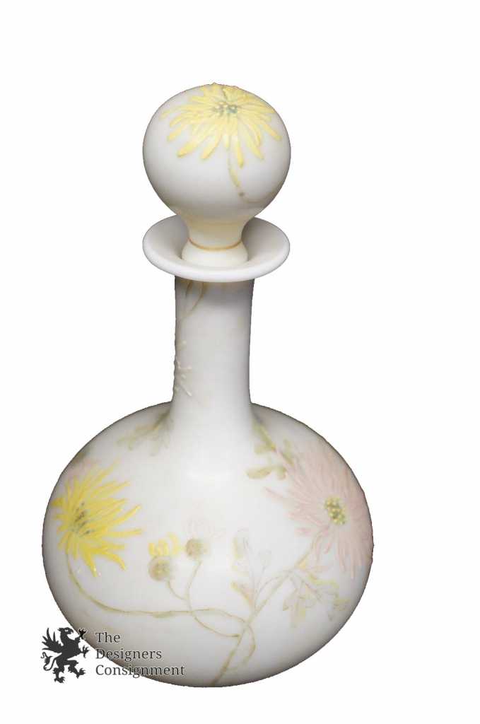 Here is a very cool milk glass decanter. It has hand painted floral designs and displays very well.