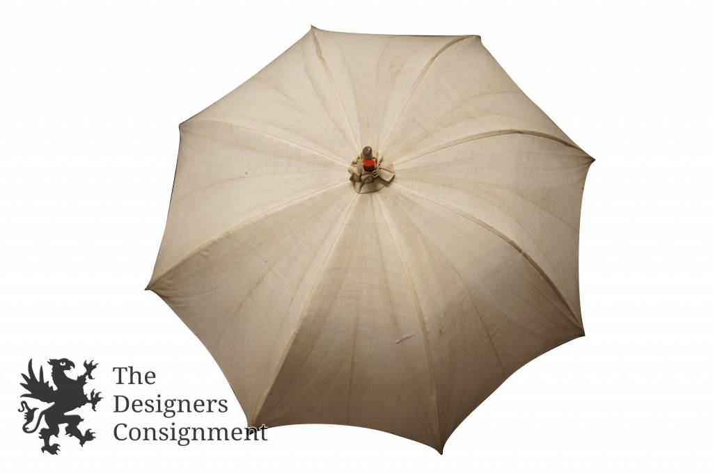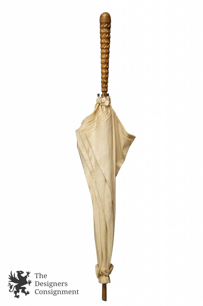 Arts + Crafts Vintage Cloth Umbrella With Carved Handle 30" Open Rain Stopper