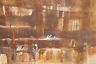 This is a gorgeous piece of art. It is an urban cityscape watercolor in a lovely abstract style that we believe is depicting a scene from downtown Dayton, Ohio based on the name of one of the businesses (Rike's). This is an absolutely beautiful piece and it would make a wonderful addition to your home or collection.