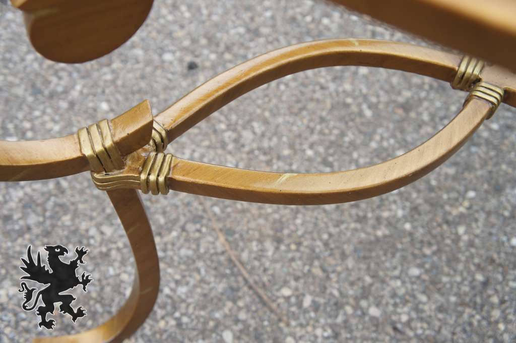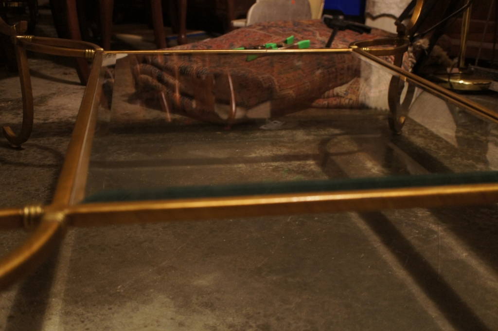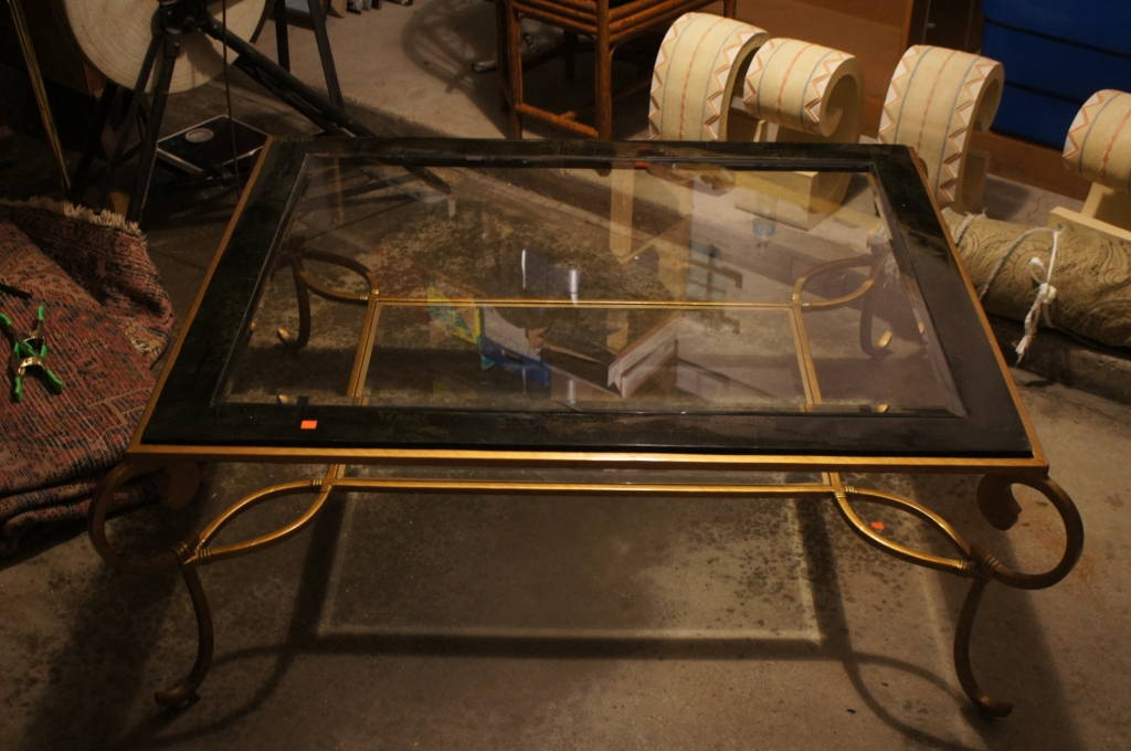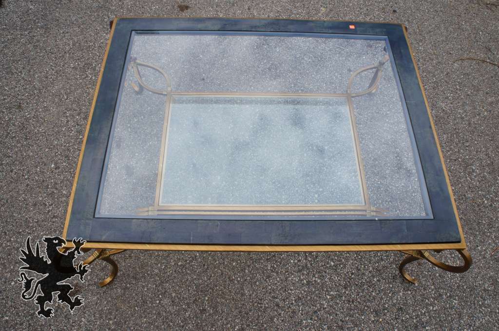 Features 2 tier glass top and has gold wrought iron body with unique design