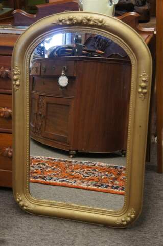 Antique Gold Painted Wall Hanging Mirror Wooden Leaf Fruit Accents Rounded Top