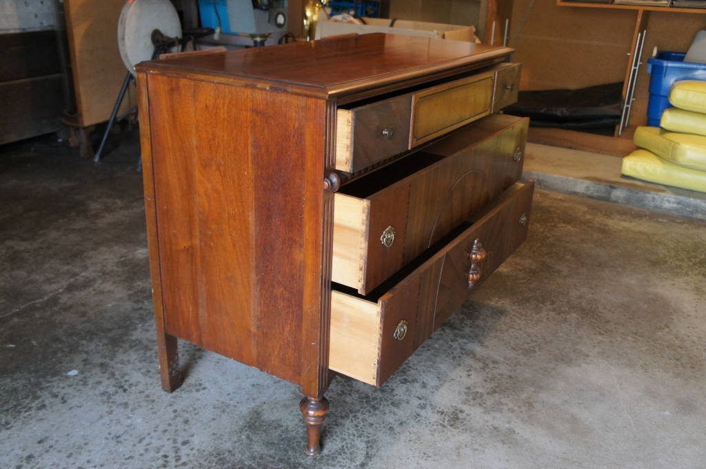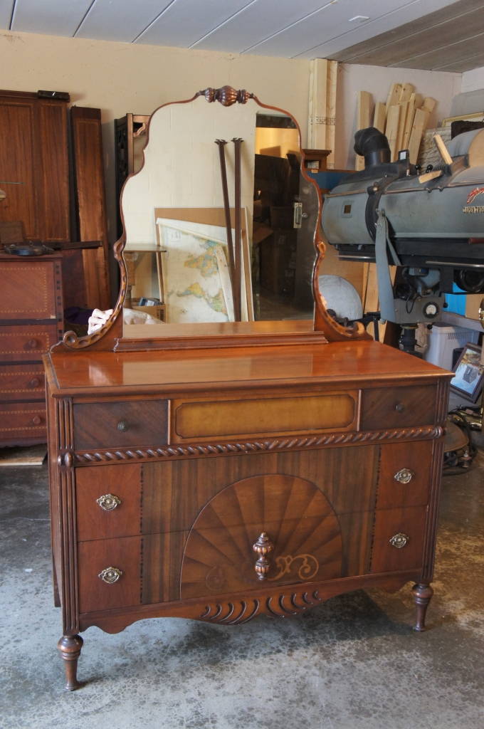 Art Deco 1920s Antique Walnut Bedroom Dresser & Mirror W/ Sunburst Front Ornate