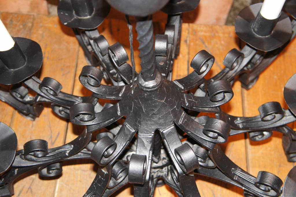 Large Beautiful Black Wrought Iron 20 Light Traditional Chandelier Entryway