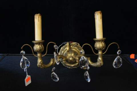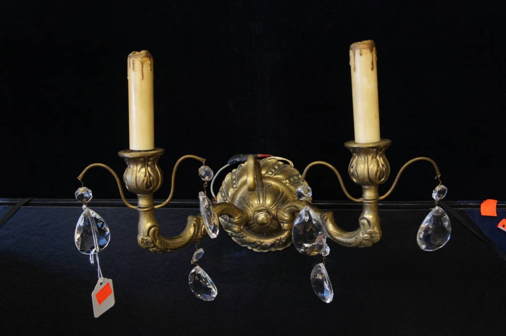 Wonderfully Gilt Swedish Drop Crystal Candelabra Wall Sconce Made in Sweden