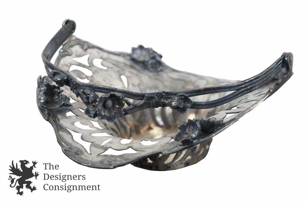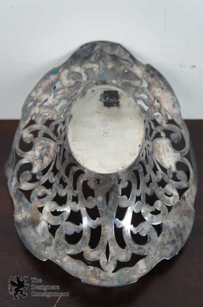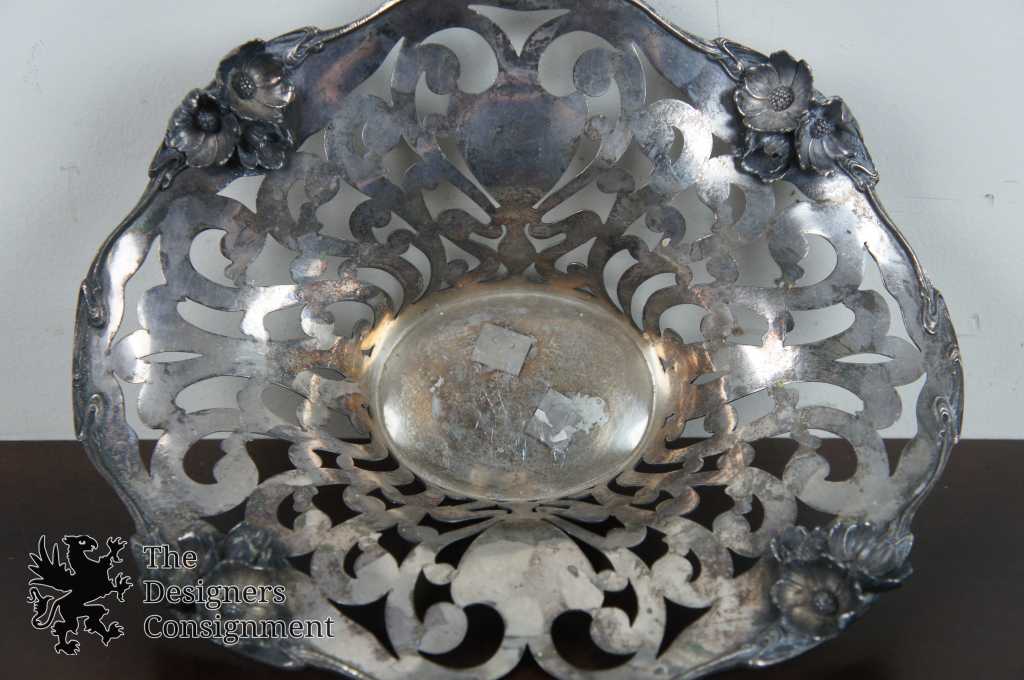 This is a gorgeous piece from the American company, Homan Silverplate Company of Cincinnati, Ohio. It is a silver plated bride basket with a handle that is decorated with floral motifs. The model number on the base is "2528". This is an absolutely beautiful piece and it would make a wonderful addition to your home or collection.