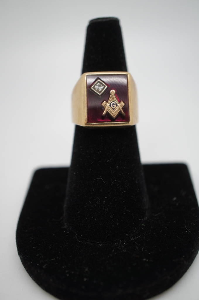 Handsome Vintage Mens 14k Gold Masonic Ring With Genuine Diamond Size 8.5