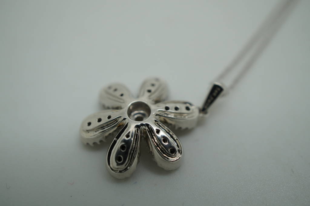 Sexy 14K White Gold Diamond Flower Pendant Necklace Signed JWBR 3.7 Grams