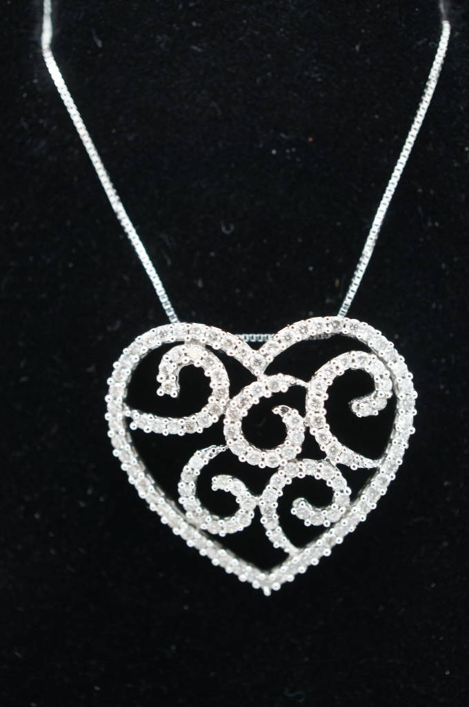 14K Sexy White Gold Diamond Heart Pendant Promise Necklace 3.9 Grams Stunning