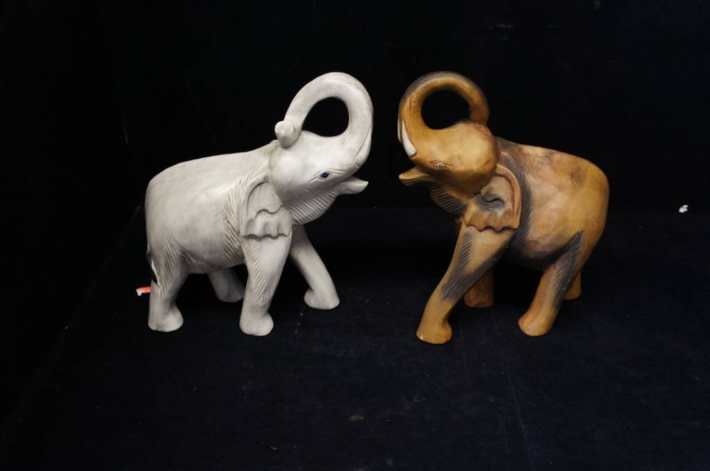 Unique Pair Solid Wood Carved Elephant Figurine Vintage Statue Display Fun Gift