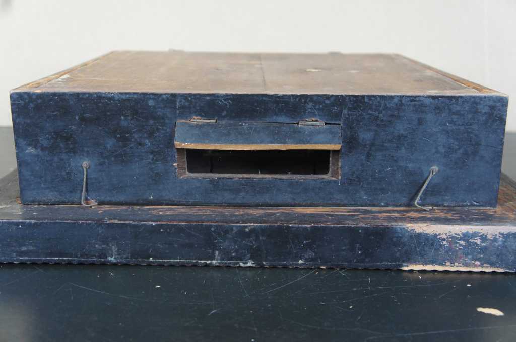 Early 20th century art nouveau wall clock. Made from wood with a hand painted floral tin face.