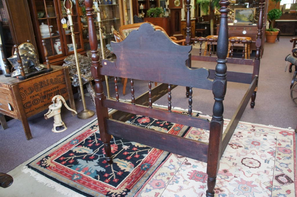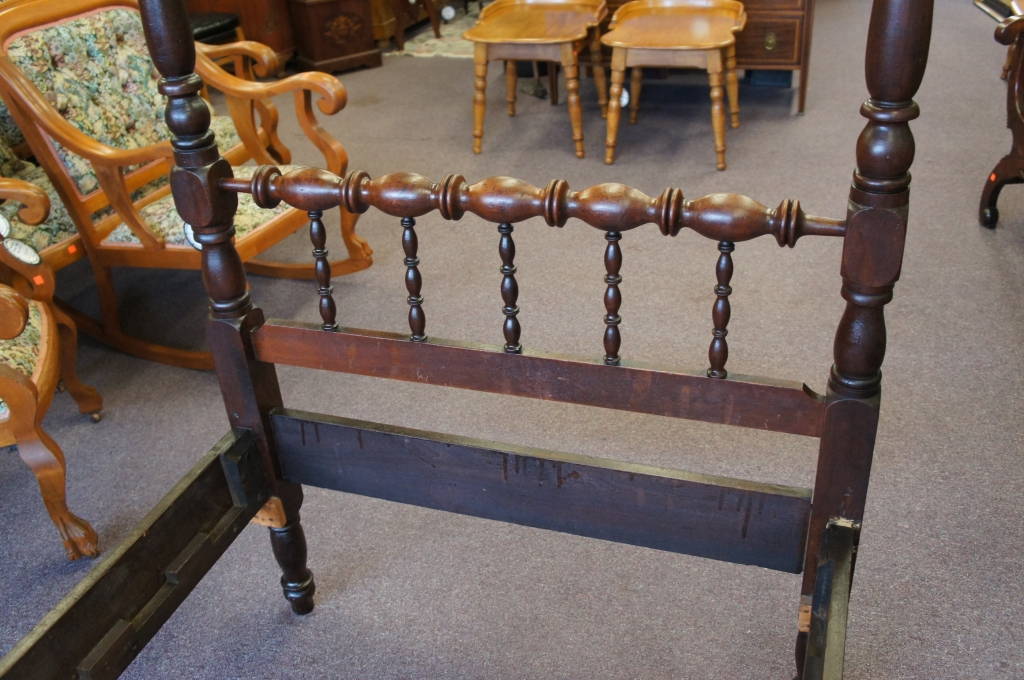 Antique Solid Walnut Wood Twin Size Turned Poster Bed Four Post Federal Style