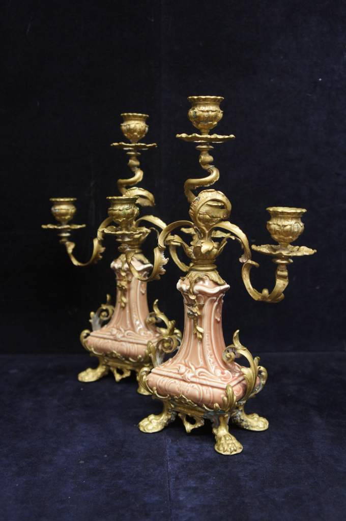 2 Antique Early 19th Century Louis XV French Ormolu Bronze Candelabras 3 Candle