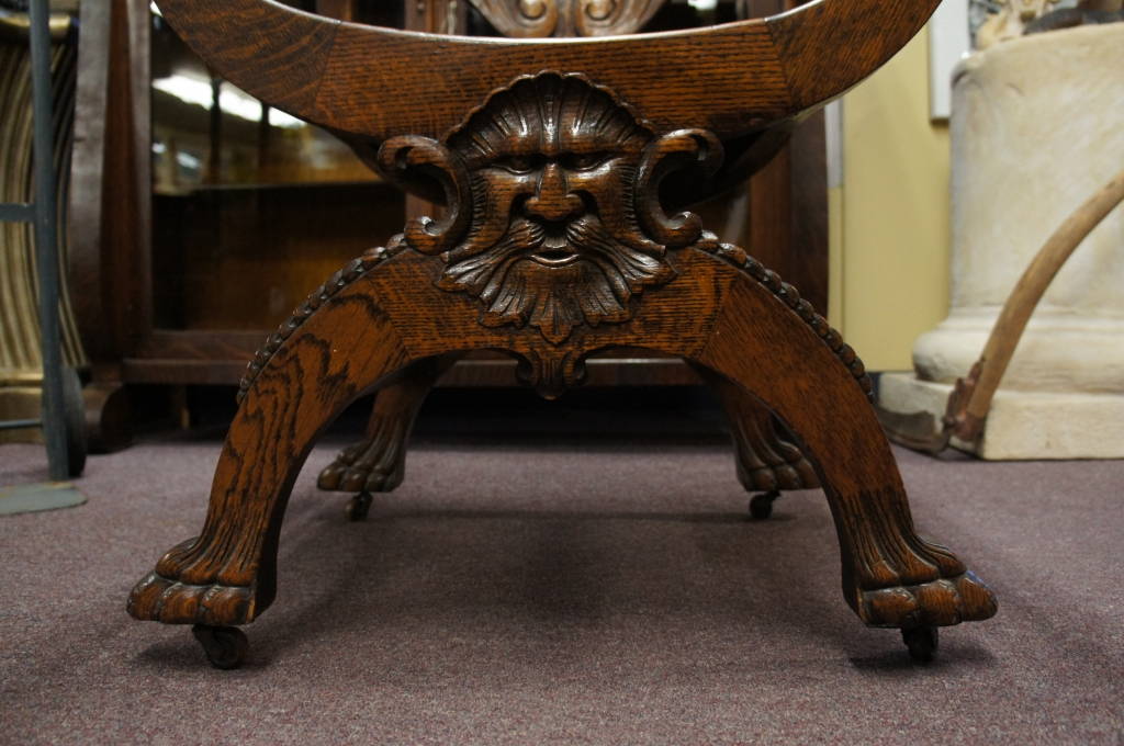 Antique Gothic Revival Oak Saddle Seat Bishop Chair Thrones Lion Heads Casters1099