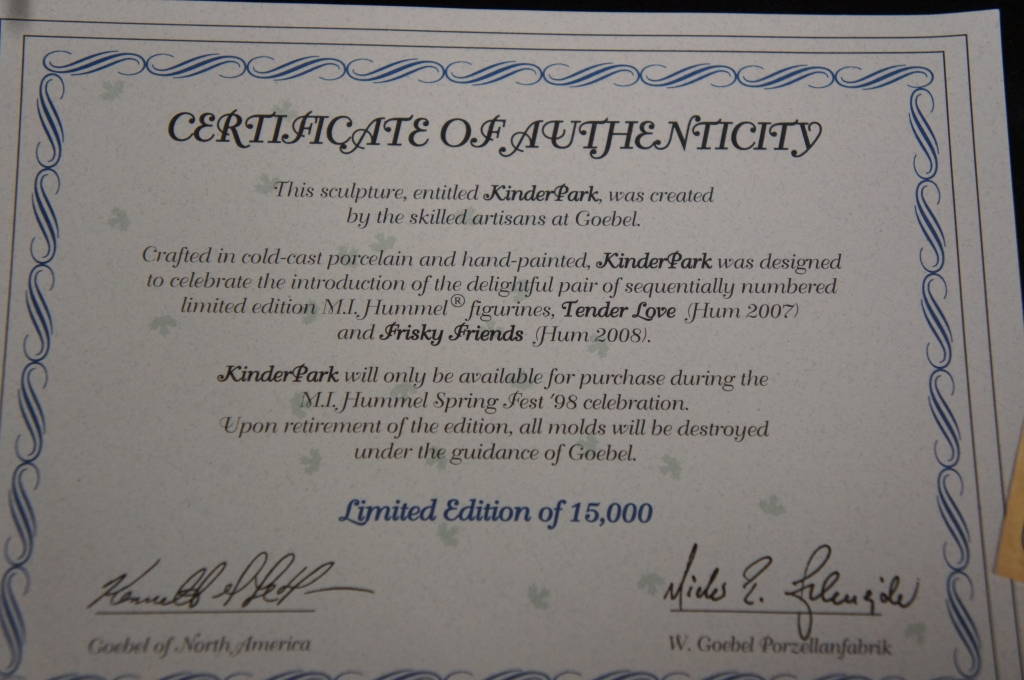 Goebel M.I. Hummel #2007 "Kinderpark" Hummelscape Mint IOB Germany TMK 7 COA