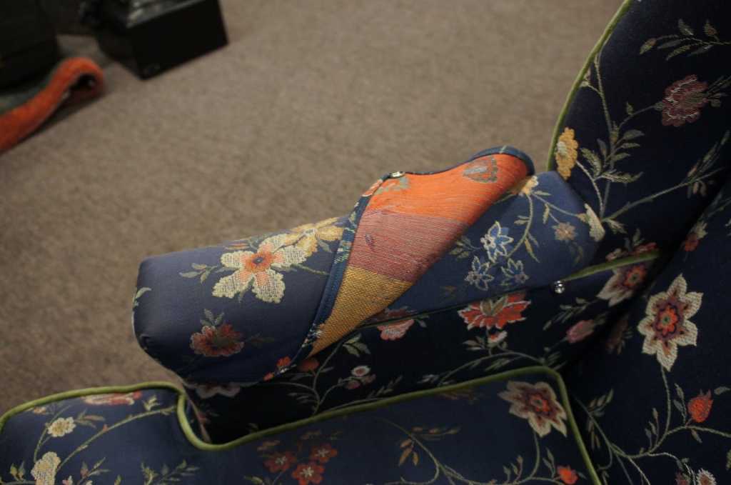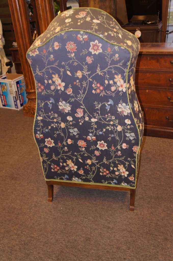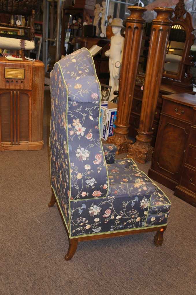 Here is a beautiful Gentleman's arm chair. Victorian Dome back style. Features sleeves that snap on to cover the arm. A wooden base and stretcher. Will make a fine addition to any home or office.