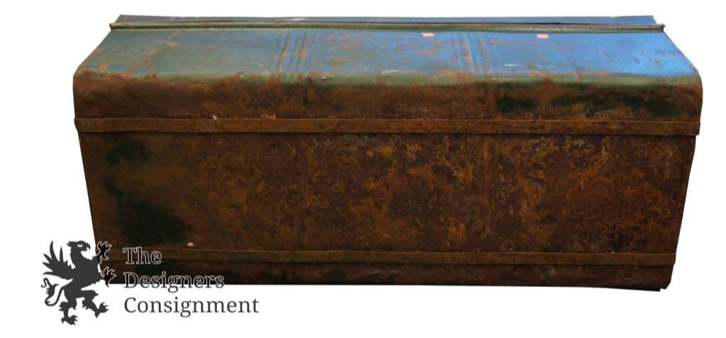 This piece shows signs of use and age. The bottom of this trunk is very rusty. The rest of the trunk is not as bad. A great rustic retro look. See Pictures
