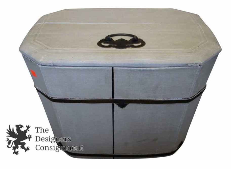 Wear from use and age. Slight separation in the box, however it is held together by the metal band around the base. See Pictures and feel free to ask questions