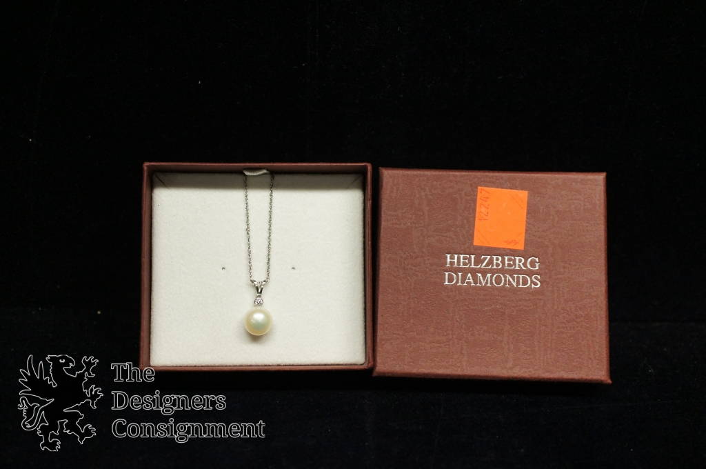 9mm Pearl Diamond Necklace Chain Pendant Honora Sterling Silver .925 Helzberg